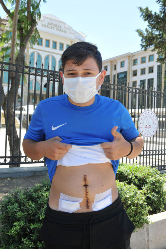Hastanede kan kustuğunu, kanlı idrar yaptığını belirten Furkan Özkaya, "İç kanama geçirdim. Bağırsaklarım yırtılmış, karın bölgem su toplamış. Acilen ameliyata aldılar ve 6 saat süren bir operasyon geçirdim. Yoğun bakımda kaldım. Şu an karın bölgemde 50'ye yakın dikiş var.