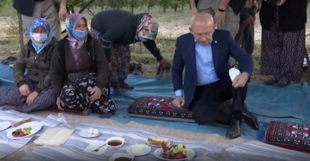 CHP Genel Başkanı Kılıçdaroğlu’nun, birlikte kahvaltı etmek için işçilerin ayakkabılarını çıkararak oturduğu yer sofrasına ayakkabılarıyla gelip oturması tepki çekti.