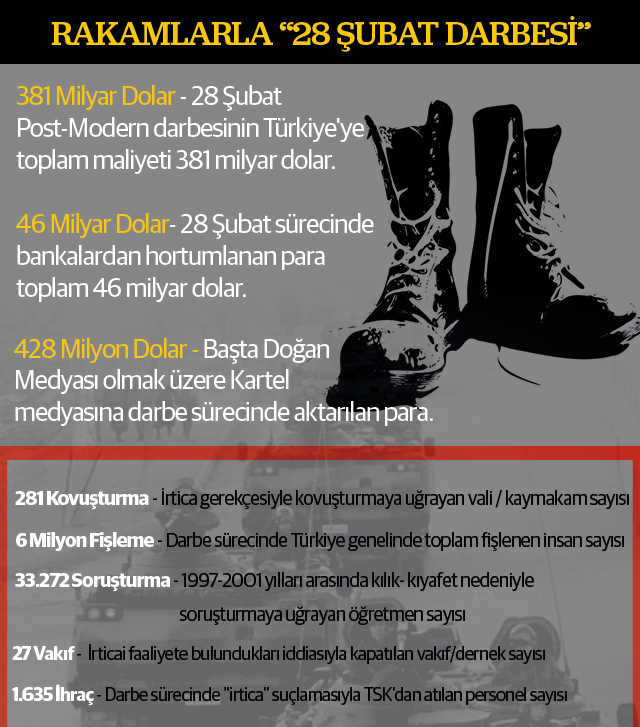 Hep siyasi yönüyle konuşulan 28 Şubat süreci, aslında finansal ve ekonomik yönden de bir darbeydi. Karmaşık sosyal ve siyasal atmosferi ile Türkiye'yi büyük ölçüde etkileyen darbenin rakamsal boyutu bugün bile çözülmüş değil.