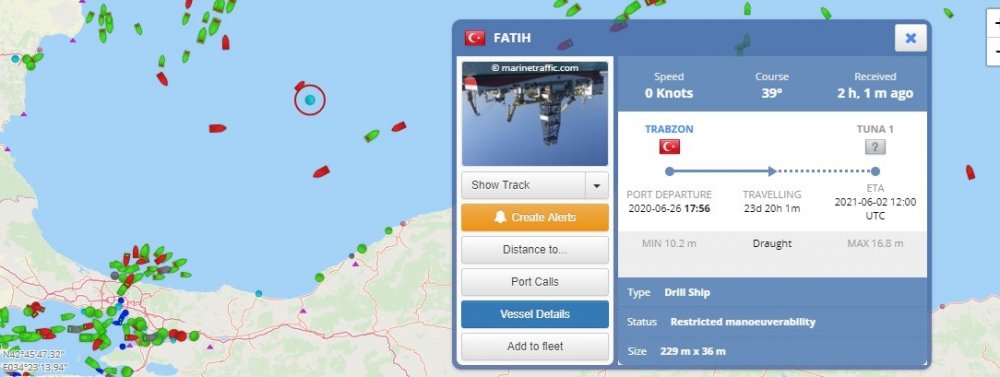 Fatih Sondaj Gemisi, 29 Mayıs 2020’de İstanbul’un Fethi’nin 567. yıl dönümünde Recep Tayyip Erdoğan’ın katılımıyla düzenlenen törenle İstanbul’dan Trabzon Limanı’na uğurlanmıştı. Trabzon’da sondaj için gerekli hazırlıklar yapıldıktan sonra bugünden itibaren Karadeniz Ereğli ilçesi açıklarındaki Tuna-1 lokasyonunda ilk sondajına başladı.