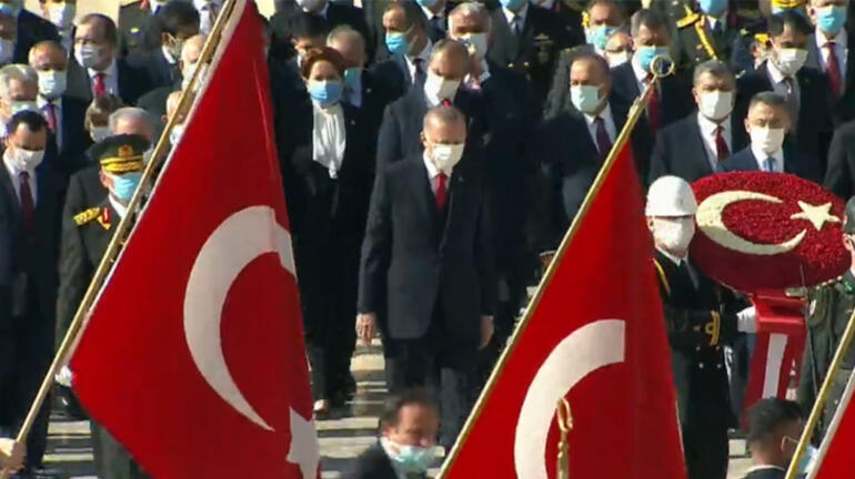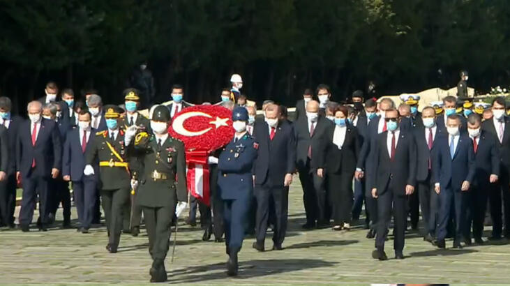 Cumhurbaşkanı Recep Tayyip Erdoğan önderliğinde, Devlet Erkanı 29 Ekim Cumhuriyet Bayramı törenleri için Anıtkabir'i ziyaret etti. Meclis Başkanı Şentop, İYİ Parti Genel Başkanı Meral Akşener, MHP Genel Başkanı Devlet Bahçeli, CHP Genel Başkanı Kemal Kılıçdaroğlu,bakanlar gibi isimler törende yer aldı.