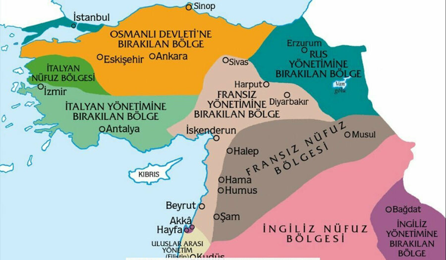 Sykes Fransızların Suriye’yi elde etmek istediğini biliyordu. Ancak Fransa’nın doğrudan hakimiyet kurmak istediği sadece Suriye sahilleri ve Lübnan’dı. Suriye’nin iç bölgelerini yönetmeye kaynak ayıramayacağından dolayı buraları kendine bağlı kukla yöneticilerle idare edecekti. Fransa’nın bu niyetinden bihaber Sykes, Pycot’a Suriye’nin bu bölgelerinin Araplara verileceğini söyleyerek burada doğrudan hakimiyet kurmamasını, sadece dış işlerinde Fransa’ya bağlı olmasını istemişti. Fransa’nın arzusuyla tamamen örtüşen bu talebin yanısıra Fransa’ya Musul teklif edilerek İngilizler Fransızların gelecekteki olası Rus tehdidine karşı tampon olmasını istemişti. Ayrıca İskenderun Limanı’nın serbest bir liman olması ve iki tarafın da yönetmeye heves ettiği Filistin topraklarının da uluslararası bir yönetime bırakılması karara bağlanmıştı. Ortadoğu bölgeye yabancı iki gücün elinde böylece paylaşılmış oldu.