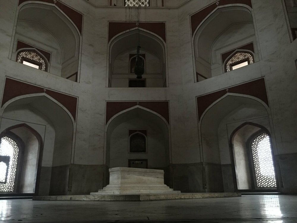 Babür İmparatoru Humâyûn'un mezarı, mozolenin merkezinde, geniş pencerelerle donatılmış bir alanda yer alır.